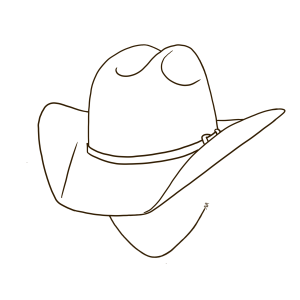 Het uiterlijk: Brede rand. Hoge kroon. Gebogen zijkanten. En die persoonlijke vouw in de kroon, de vingerafdruk van de cowboy.